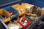 In über 50 Bleckisten findet sich ein wildes Sammelsurium an hauptsächlich H-D & Buell Gebrauchtteilen. Hier findet man allesmögliche Übriggebliebene auch aus älteren Tagen. Wer Keller oder Garage entrümpeln will und nicht den Ergeiz hat selber in Entsorgungsaktionismus zu verfallen kann seine gesammelte Schätze vorbei bringen und wir machen ein Übernahmeangebot.